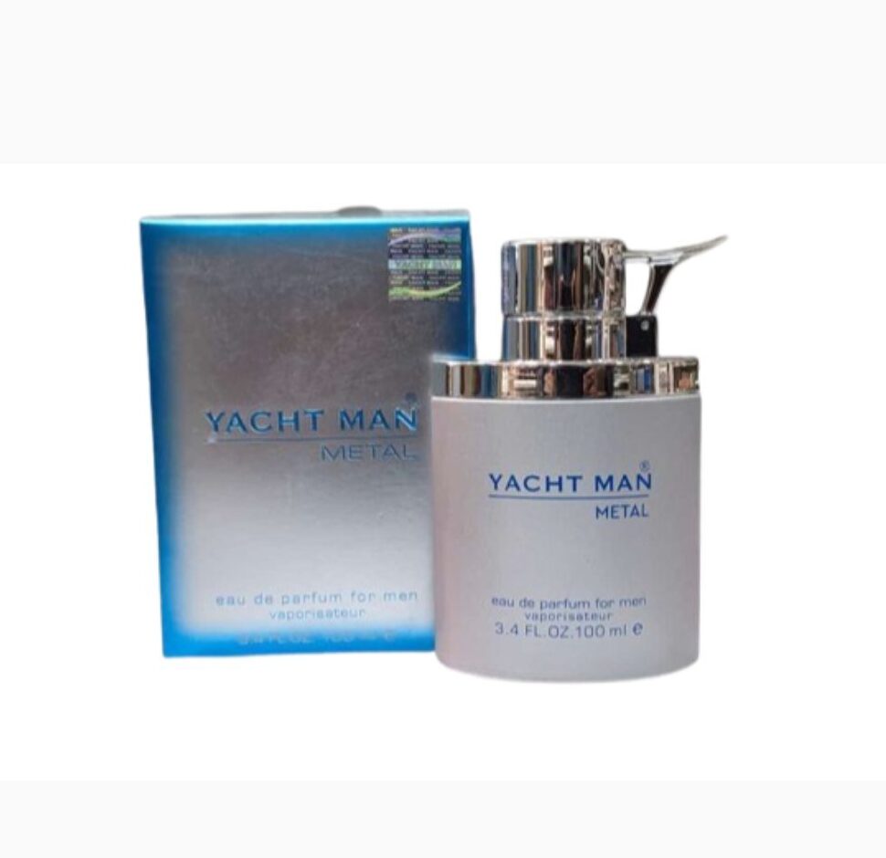 Shipping, taxes, and discounts calculated at checkout.Yacht Man Metal Eau de Parfum (100 ml) is a sleek and contemporary fragrance tailored for the modern man. It opens with crisp citrus and metallic nuances, moves into a heart of aromatic herbs and spicy accords, and finishes on a smooth base of musk, cedar, and amber.